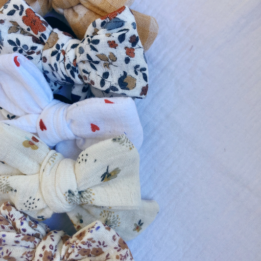 Chouchou Tissu - Vichy bleu / rose marguerite
