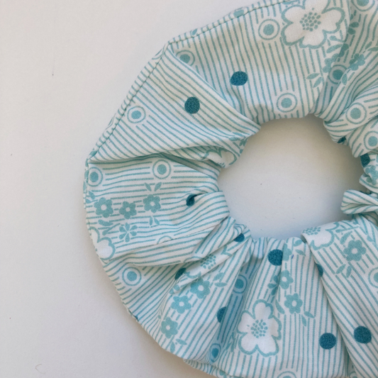 Chouchou Tissu - Vichy bleu / rose marguerite