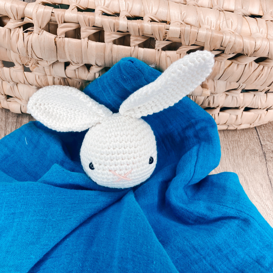Doudou Lapin - Gaze de coton Pétrole