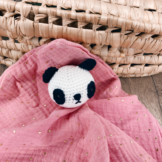 Doudou Panda - Rose thé à pois dorés