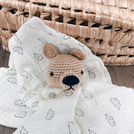 Doudou Ours - Ecrue motif Hérisson