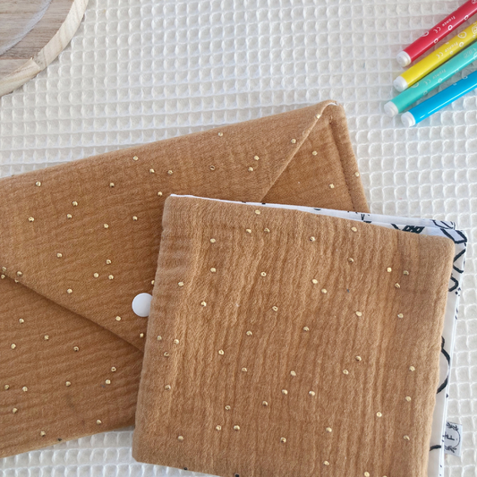 Kit à Colorier Lavable - Gaze de coton Camel à pois dorés