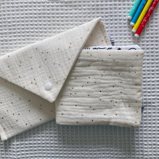 Kit à Colorier Lavable - Gaze de coton Écrue à pois dorés