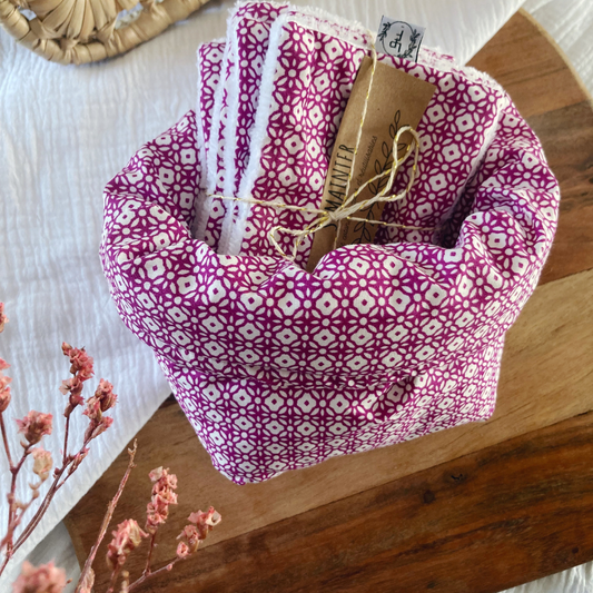 Panier et Semainier de Cotons Lavables - Violine à motifs