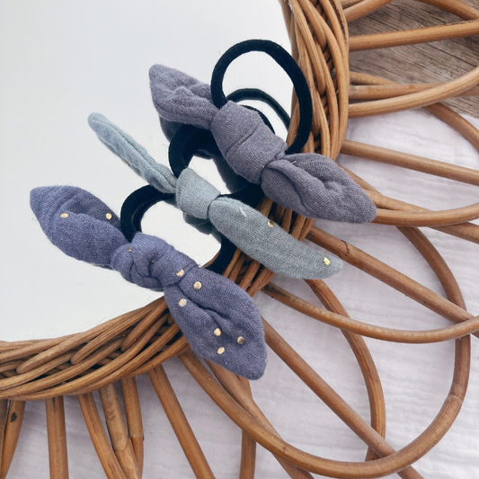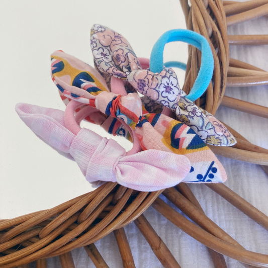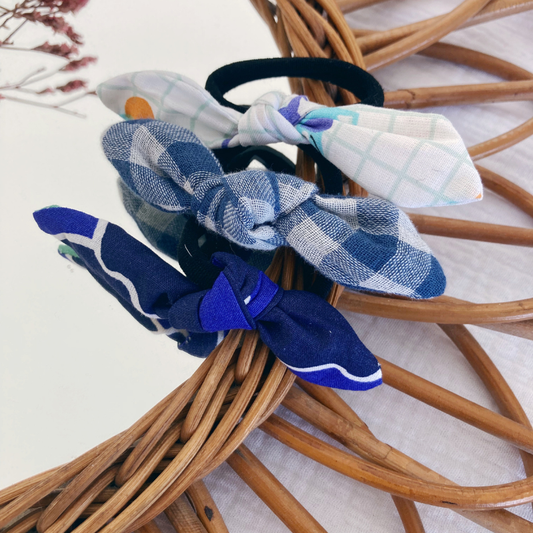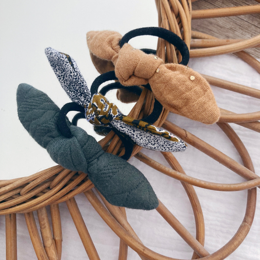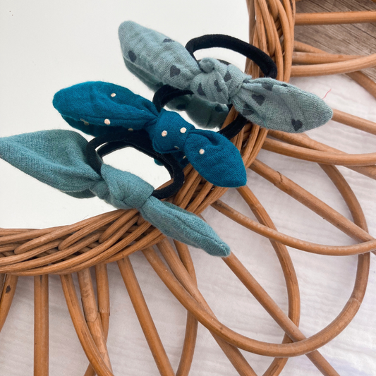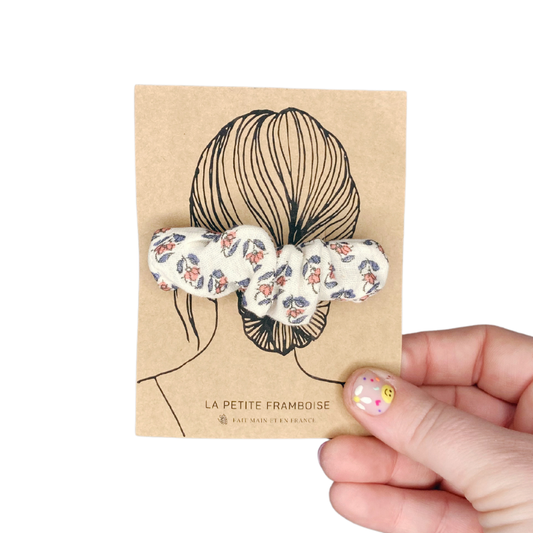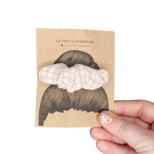 Pince Scrunchy - Blanc carreaux turquoise et teckel