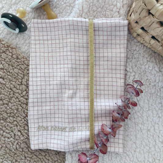 Protège carnet de santé - Gaze de coton Carreaux beige