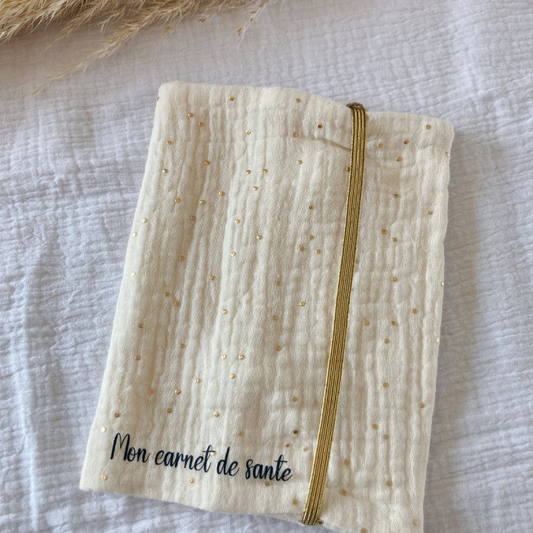 Protège carnet de santé - Gaze de coton Ecrue à pois doré