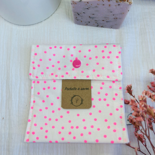 Pochette à Savon Imperméable – Pois rose fluo