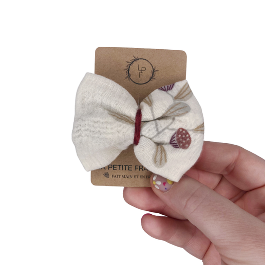 PromotionBarrette Nœud - Écru oiseaux terracota