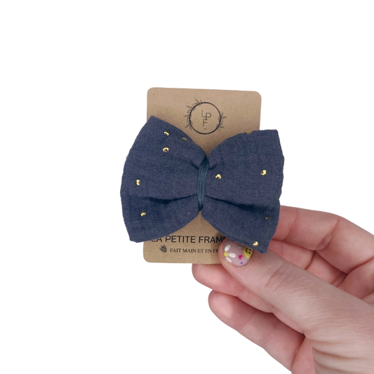 PromotionBarrette Nœud - Gris à pois dorés