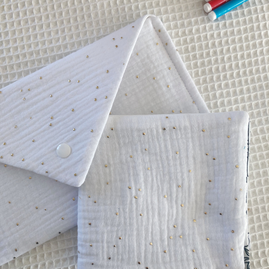 Kit à Colorier Lavable - Gaze de coton Blanc à pois dorés