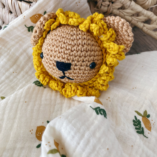 Doudou Chat - Gaze de coton Vert-de-gris / coeur
