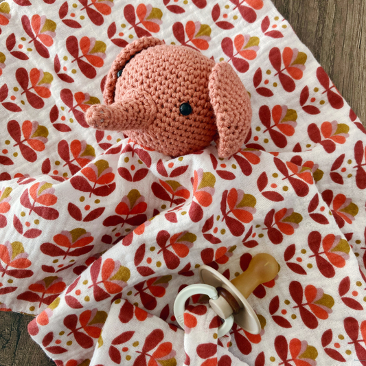 Doudou Éléphant - Beige fleurs rose / violet / orange