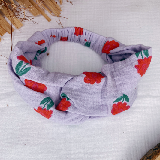 Headband twist enfant - Violet à fleurs rouges