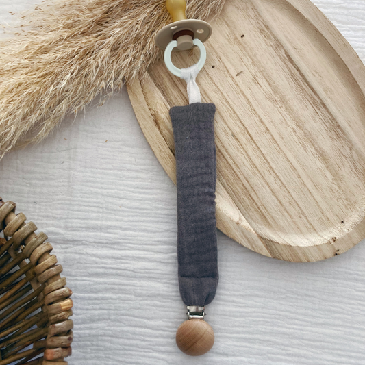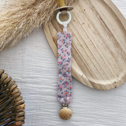 Attache tétine - Gaze de coton Écrue fleur tomette