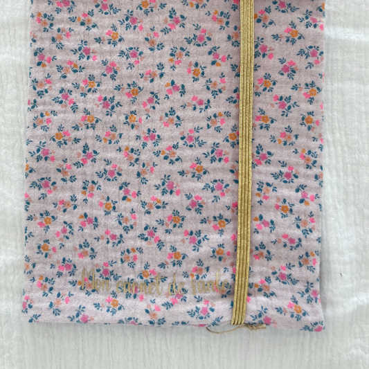 Protège carnet de santé - Gaze de coton Parme à fleurs