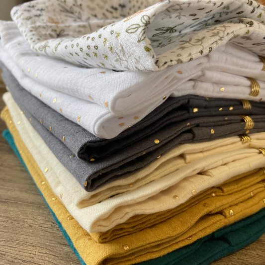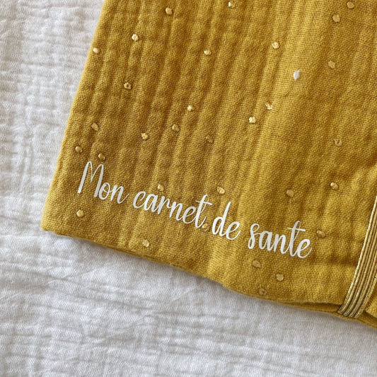 Protège carnet de santé - Gaze de coton Moutarde à pois doré