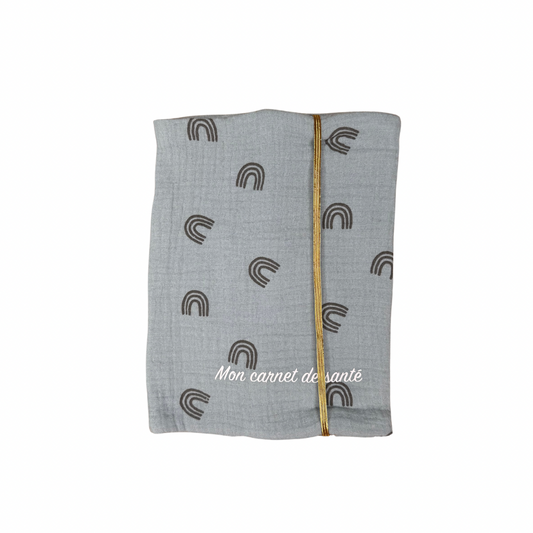 Protège carnet de santé - Gaze de coton Gris à pois doré