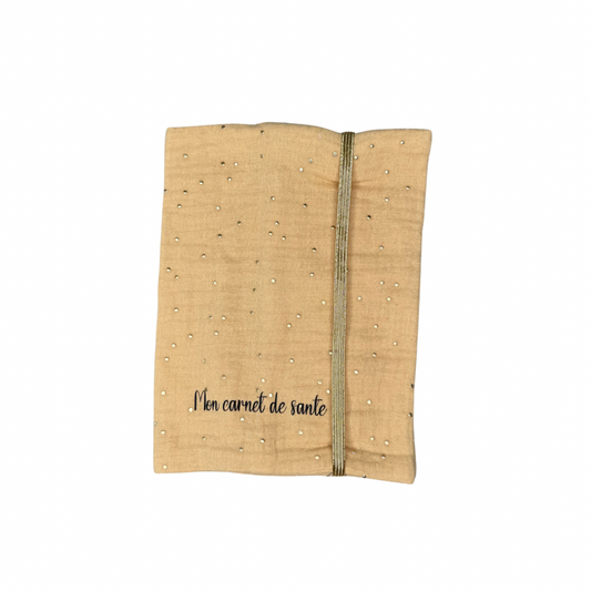 Protège carnet de santé - Gaze de coton Ecrue à pois doré