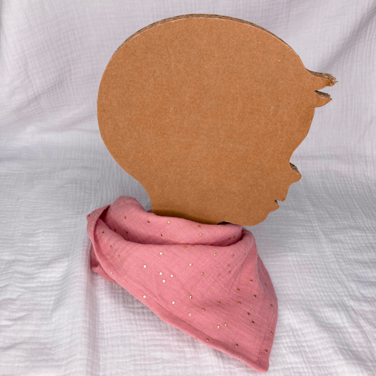 Bandana / Foulard enfant – Rose thé à pois dorés