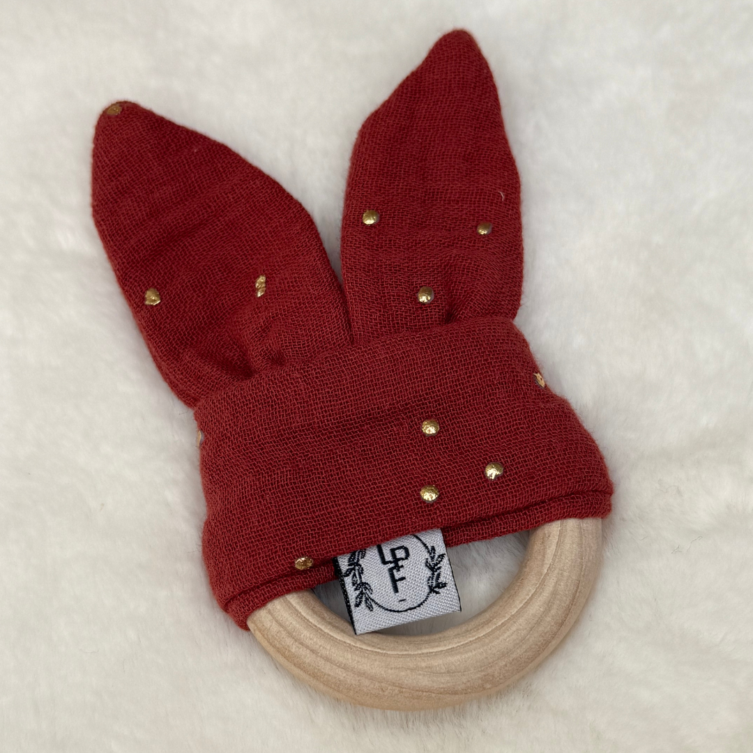 Anneau de Dentition - Gaze de coton Tomette à pois dorés