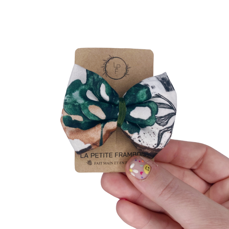 Fabriquée avec du tissu certifié Oeko-tex de haute qualité et montée sur une pince crocodile de 4,5 cm, cette barrette garantit un excellent maintien, même dans les cheveux les plus fins.